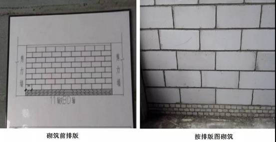 4. 確定標高,立好皮數(shù)桿。第一層磚的標高必須控制好,與磚層必須吻合,砌筑前將墻體按照層高畫出排版圖;